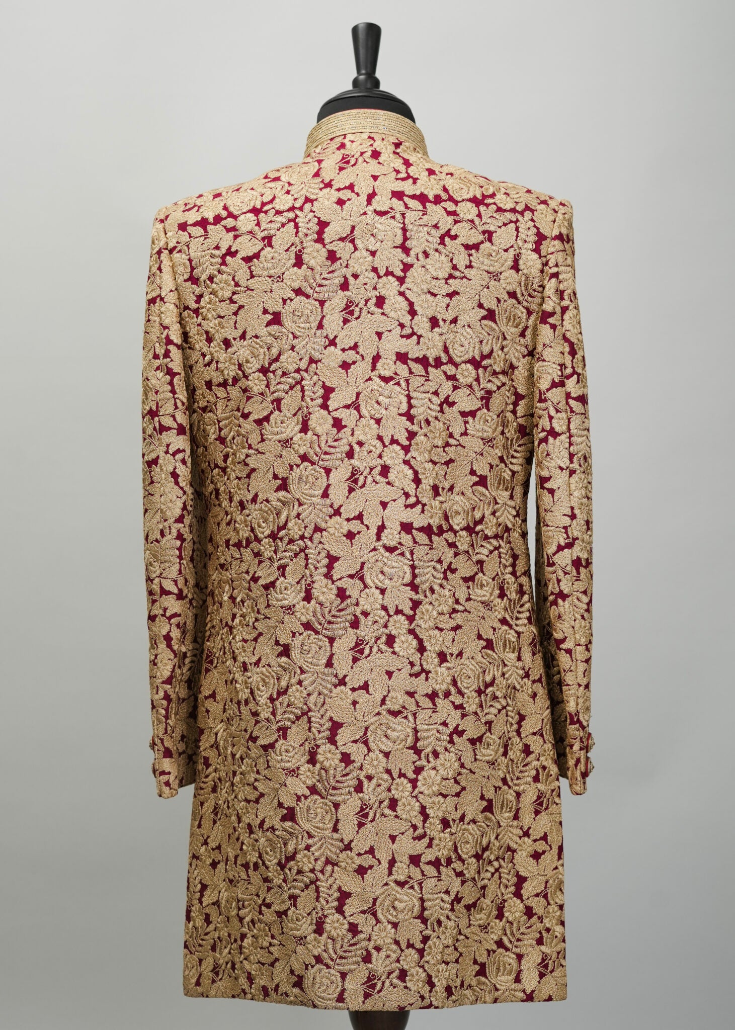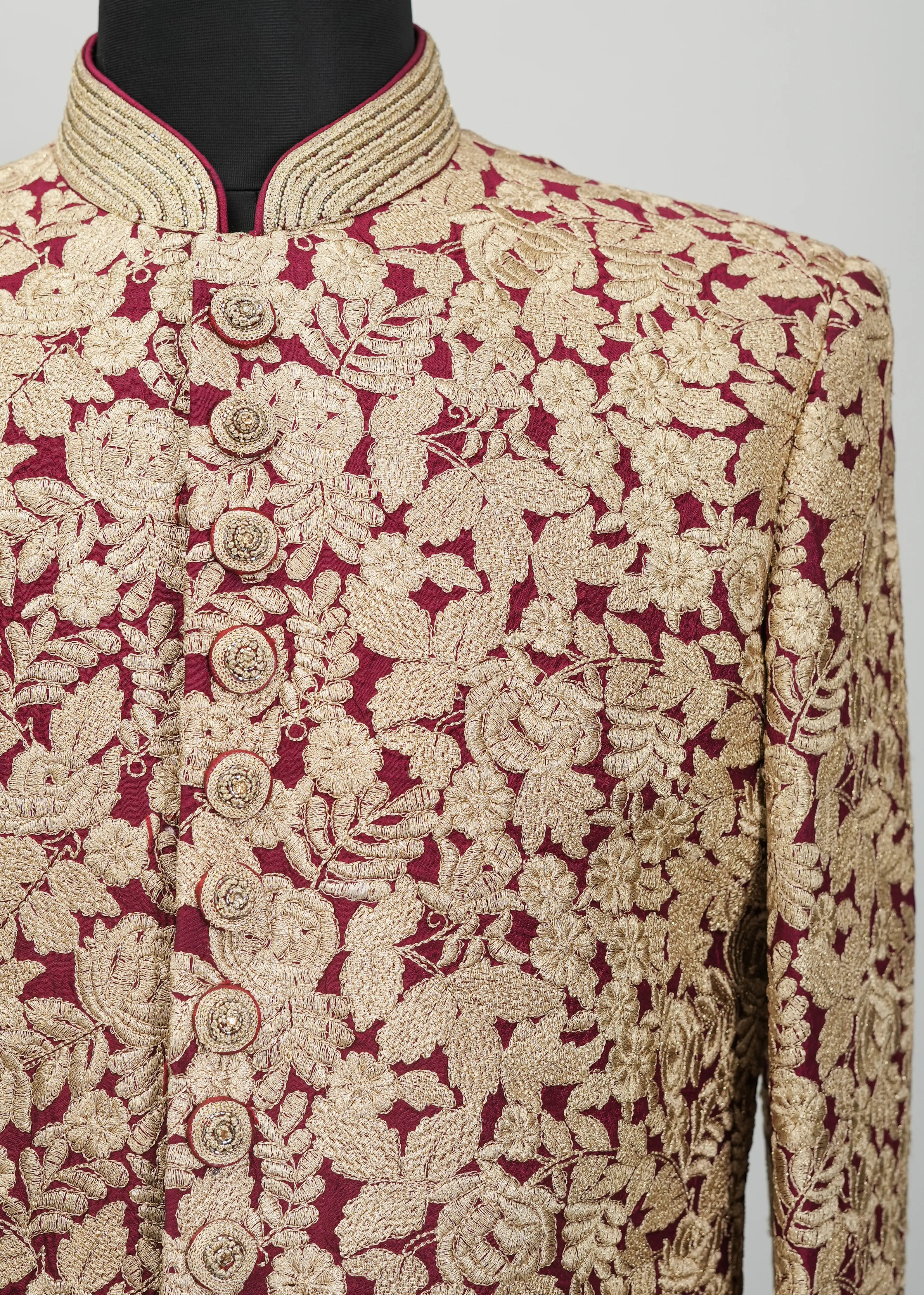 Handmade customized designer men's indowestern sherwani. Made from Silk blend fabric with satin finish that makes it comfortable eastern men's outfit to wear at wedding and other traditional occasions.