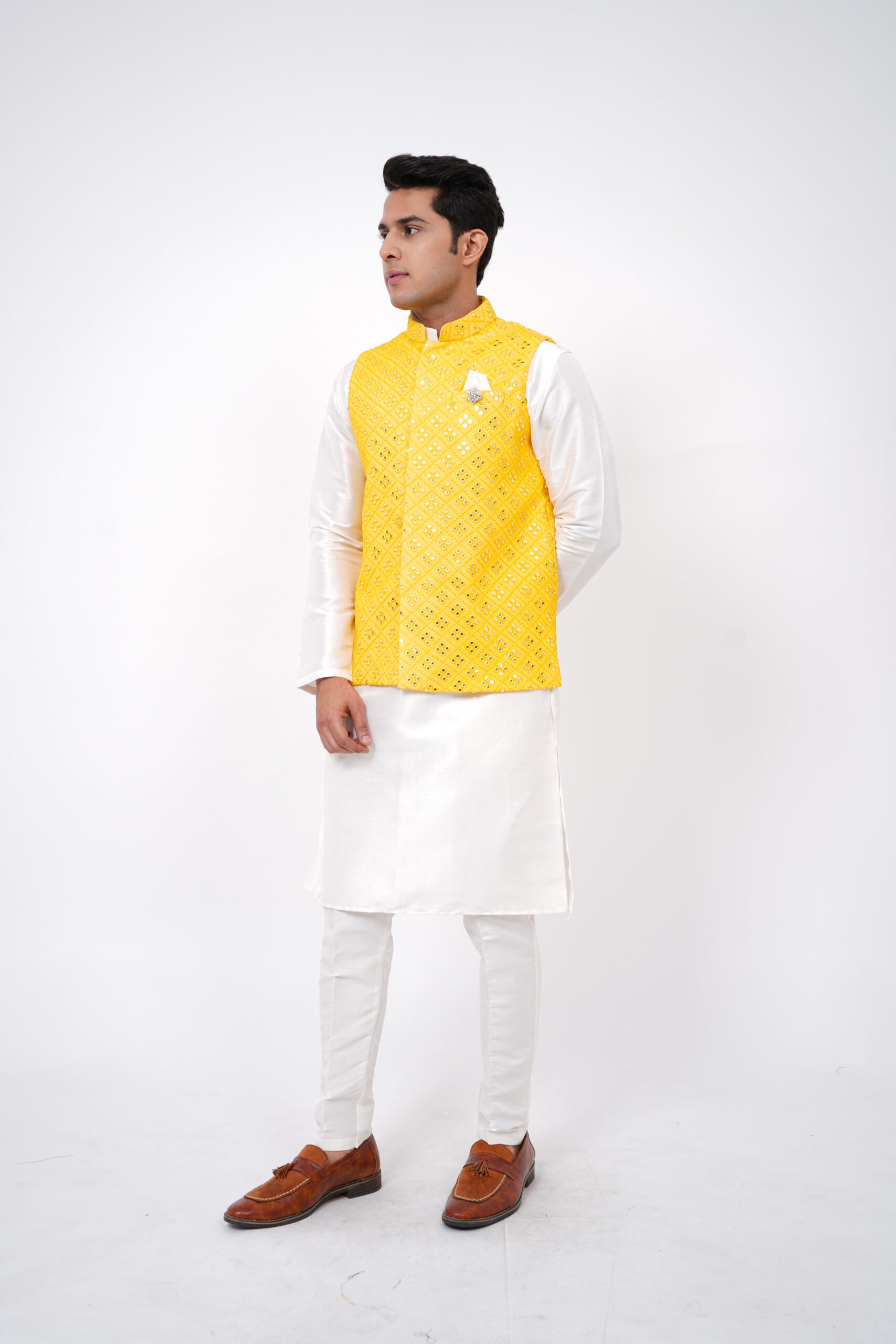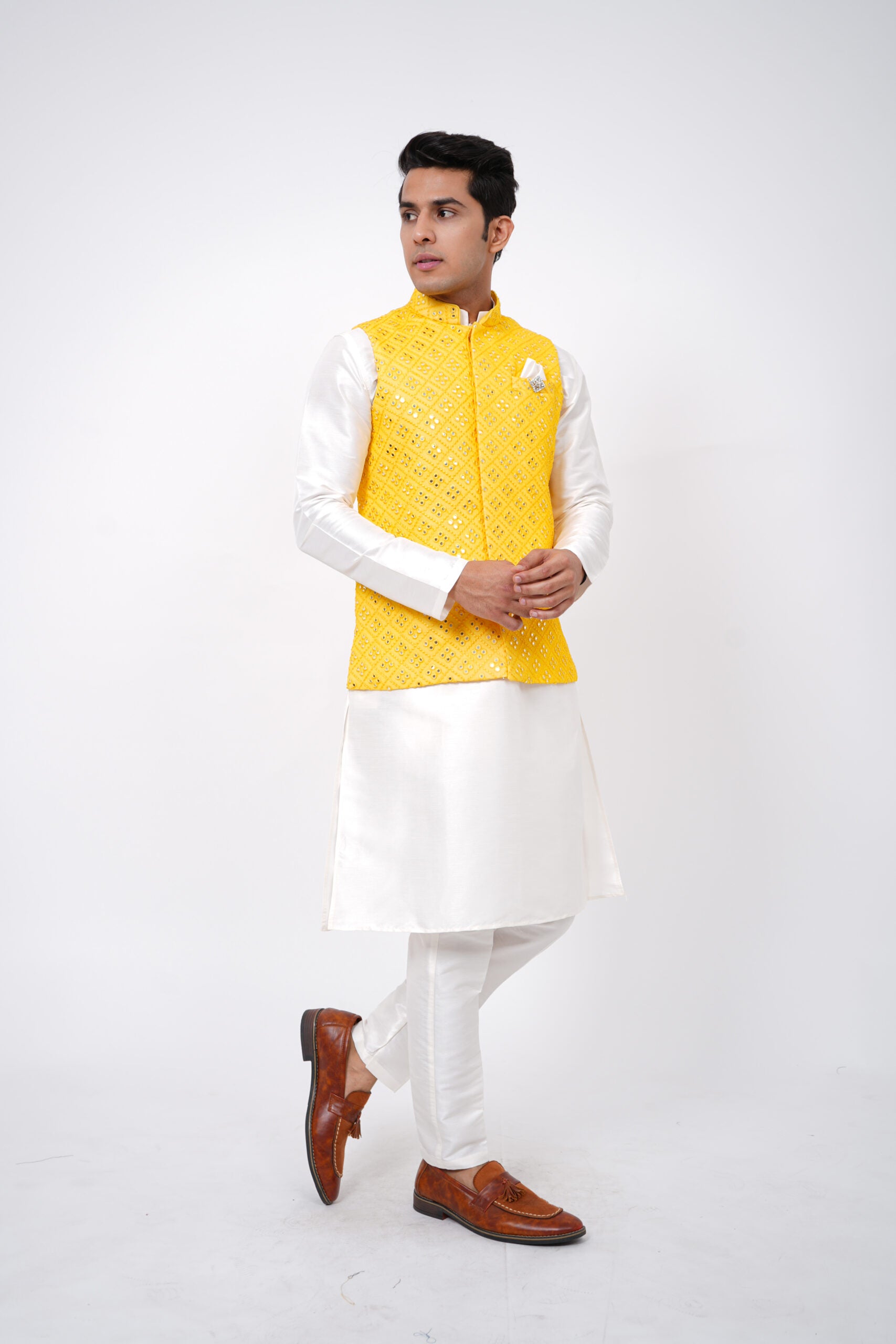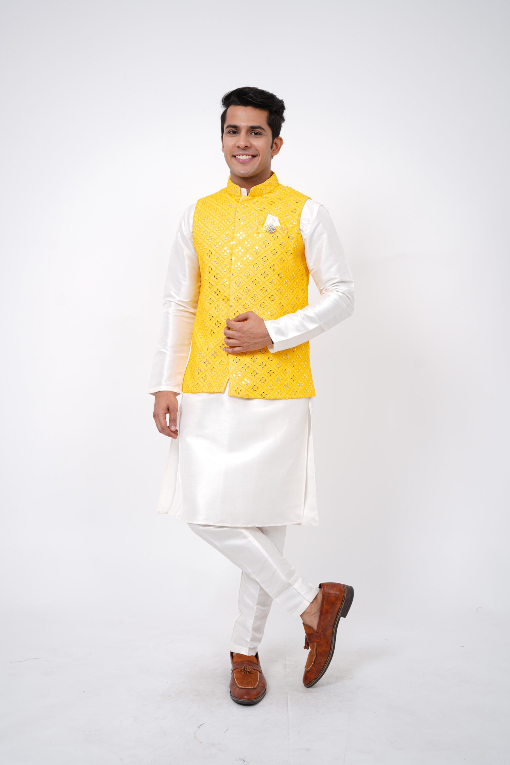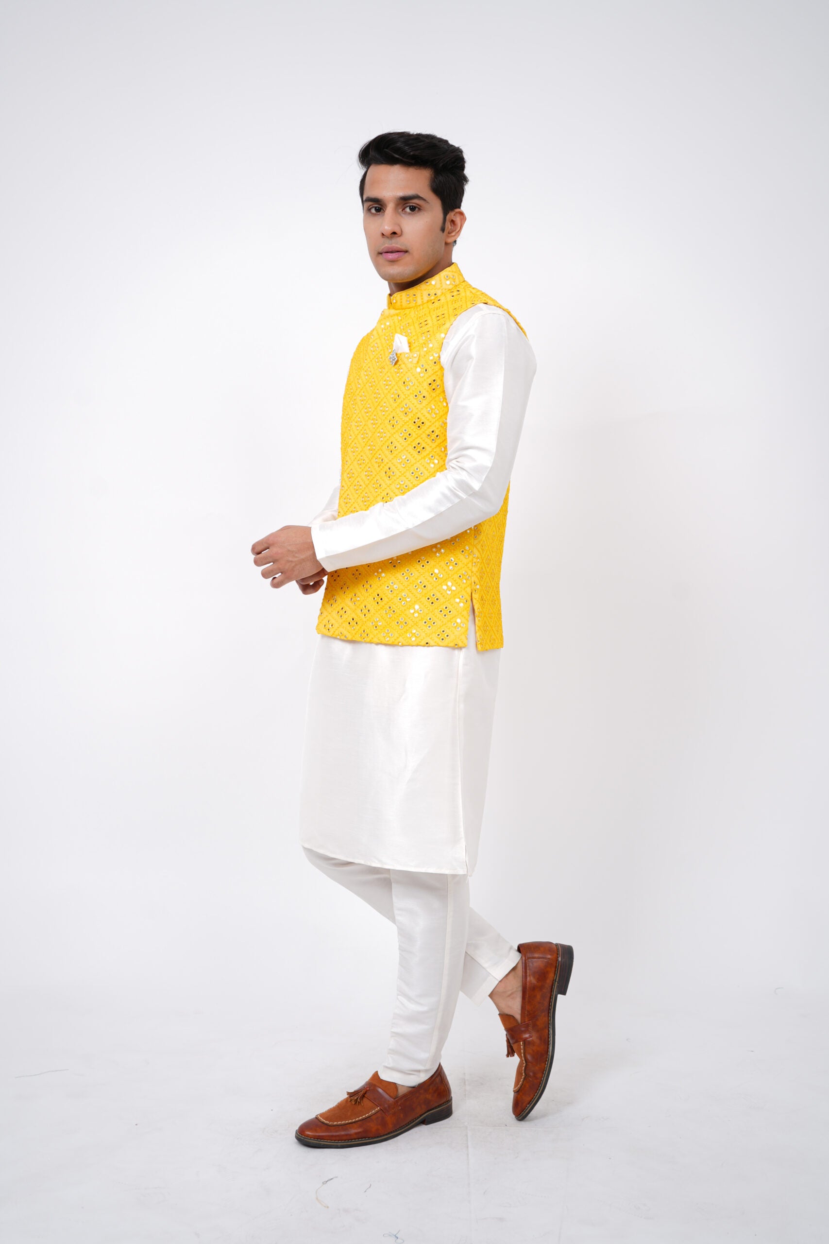 Though there is a wide range of exclusive ethnic wear for men; asymmetrical kurta pyjama set, Nehru jacket and cowl kurta set are the latest trends. Men also prefer fusion ethnic wear with a touch of formal and traditional clothing like Anarkali, Manarkali and Achkans and cowl dresses for their grand occasions.